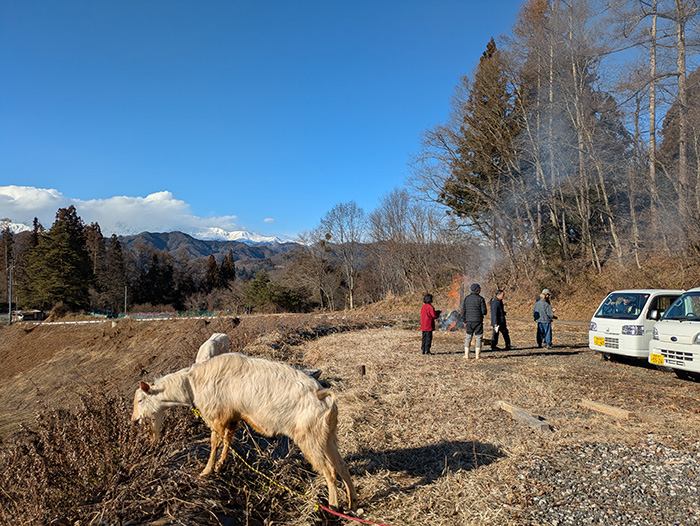 例年2,3名で時間をかけて、どんど焼きを立ち上げていましたが、人数が集まると30分ほどで完成しました。